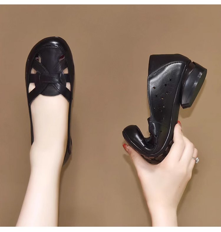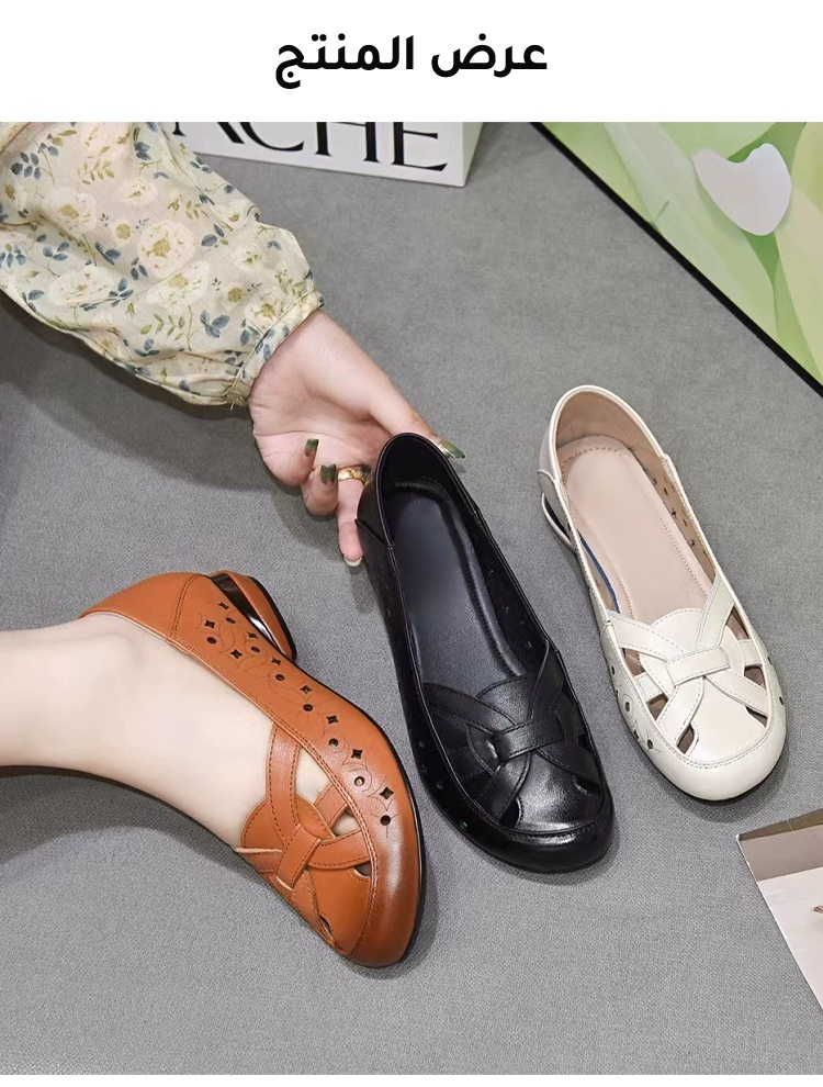Healthy-foot حذاء نسائي جلدي بنعل ناعم غير قابل للانزلاق