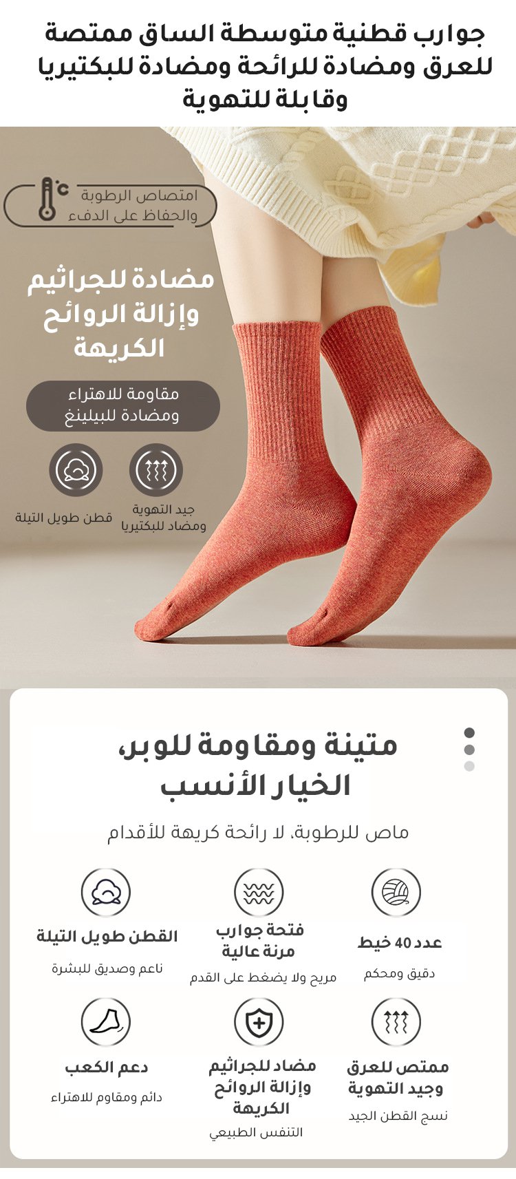 Healthy-foot جوارب نسائية متوسطة الطول قابلة للتنفس وتمتص العرق